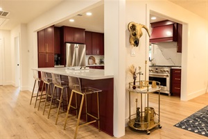 The fully stocked kitchen is a chef’s dream, with all the appliances, tools, and cookware you need to prepare meals for your group. Whether you're cooking up a big breakfast before the game or preparing a home-cooked dinner after a day of sightseeing, you’ll have everything you need to feel at home. The kitchen seamlessly opens into the dining area, making it easy to enjoy meals together with family or friends.